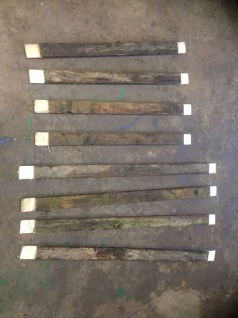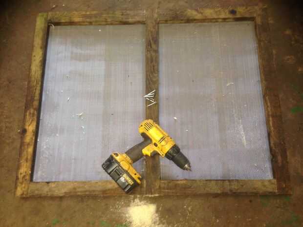 En primer lugar, los extremos de los listones se rebajen con una sierra de mano para que se solapen entre sí. A continuación se pusieron plana en el suelo y clavado, asegurando que el marco es perfectamente cuadrado.