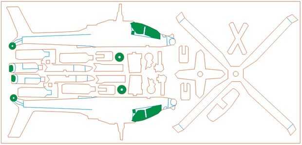 Básicamente, tomé una imagen que encontré en línea de un Apache y había trazada sobre el programa CorelDRAWX4. Luego hice diferentes capas en el modelo para que tuvieran un aspecto 3D. También he añadido algunos detalles a cada una de las piezas que creo que hizo ver mucho mejor (mi hermano pequeño pensé que también!) Después de que terminé todas las piezas me corte con el láser y montado para asegurarse de que todos fueron juntos, entonces dis-lo había montado, envuelto para arriba y le dio a mi hermano.