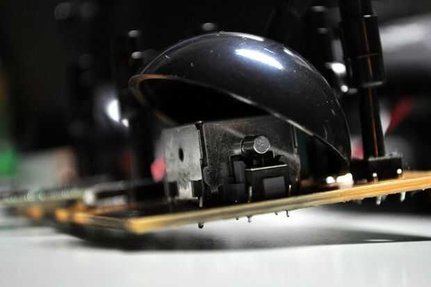 Los dos joysticks se conectan a los potenciómetros que ajustar la tensión del circuito para que cada uno están conectados de la fuente de alimentación de C.C. a través de un micro-controlador de Atmega88PA .