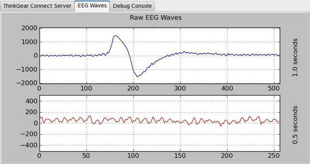 Haga clic en el botón "Inicio" en la sección de "Demonio de servidor" de la interfaz y la interfaz gráfica comenzará mostrando medidas de EEG en tiempo real. Cálculos de ondas cerebrales y la "inteligencia" se producen una vez por segundo. También es posible ver salida EEG del usuario como ondas gráfica, ver las tendencias de la atención y la relajación con el tiempo, y guardar el contenido completo de la sesión de un usuario en disco o exportar los resultados como un archivo CSV para utilizan con OpenOffice.org Calc o Microsoft Excel.
