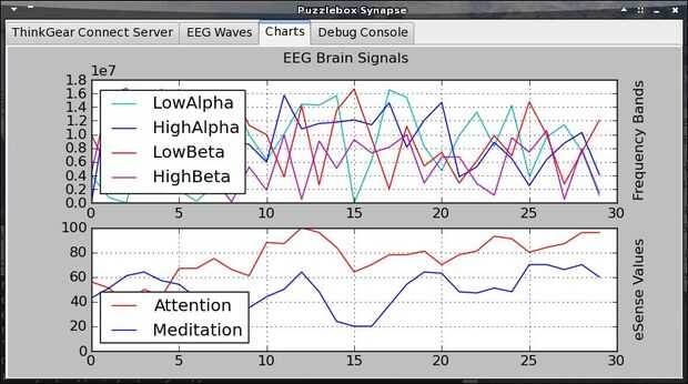 Para este Instructable utilizamos Puzzlebox sinapsis para conectarse a una Mentalidad de NeuroSky e informe de cálculos de niveles de "atención" y "meditación" para Sesiones de brainstorming Puzzlebox que utiliza estos datos para volar, flotar, o el Helicóptero controlado de Radiode la tierra.