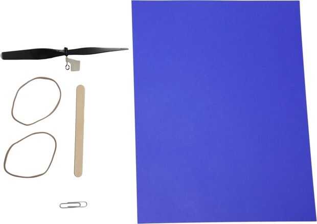El helicóptero de goma es uno de los favoritos de mis alumnos debido a la facilidad de construcción y el producto final emocionante.Materiales y herramientas:6" hélices de nariz de ganchoPalitosClips para papel2 bandas de cauchoPapel de construcción