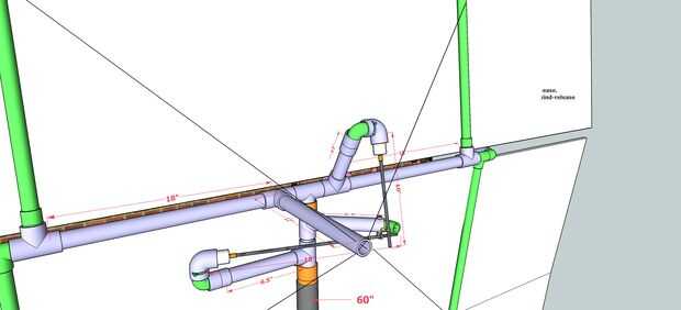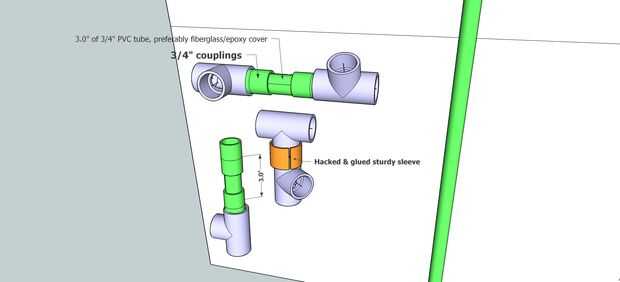 A few notas: 1) el brazo horizontal debe ser aproximadamente 4" de más cortos para que haya menos flexión. 2) no es necesario el pegarse hacia fuera la parte posteriora con el cableado de PVC. 3) la necesidad central signo de dos axii diferentes para reducir la gran naturaleza tambaleante de este diseño de PVC que mayoría de la gente no va a pensar es aceptable. Tengo un diseño en mente pero es difícil de describir con palabras y yo no he construido o lo dibujado. Es una pequeña cercha 3D saliendo de la parte de atrás donde la barra horizontal tendrá dos ejes "los acoplamientos" para conectar los puntos para la armadura a cada lado de la media. El objetivo es conseguir el medio T fuera del cuadro porque da demasiado.