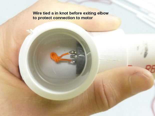 Construcción del eje: 3/4" acoplamiento gira perfectamente dentro 1" T Conectar dos acopladores de 3/4" con 3" de 3/4" tubería para ir dentro de una T, de 1" para que 3/4" material gira dentro. Ahora pueden pegar 1" T, codos y acoples en el exterior de los acopladores de 3/4", muy cerca de cada lado de la T de 1" para que no se pegan a él. Tan 1" cosas es conectado por el eje 3/4" a 1" cosas a 90 grados mediante un giratorio 1" T. Realizar opcionalmente el 3/4" eje más fuerte contra la flexión, capa media 2" de la tubería de 3/4" epoxi e incorporar fibra de vidrio o encontrar un tubo metálico de 3/4" en lugar de PVC.