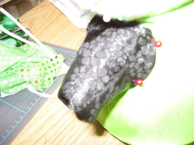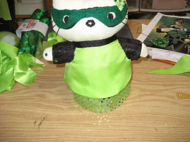 Este año hice un disfraz de Hello Kitty para mi 4 - años de edad. Hice el vestido, con una cara de kitty Hola appliqued y había hecha la cabeza de Hello Kitty de fieltro y guata.