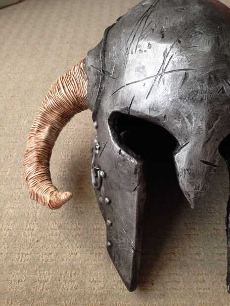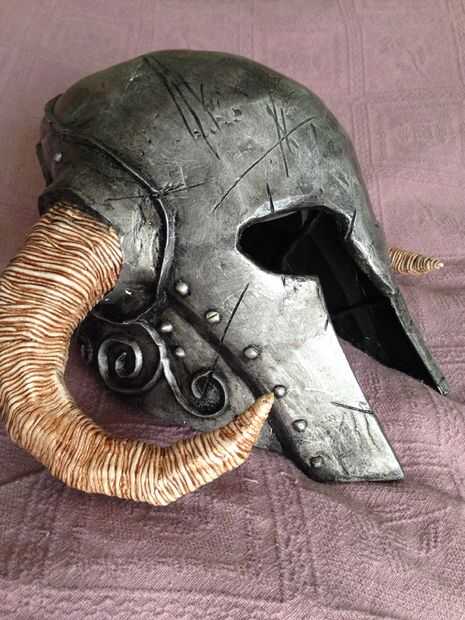 Luego claro capa exterior con unas cuantas capas de barniz de spray mate o satinado, y eso es todo! Listo y un orgulloso propietario de su casco propio skyrim nórdico!