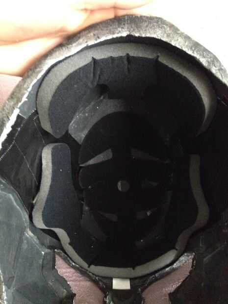 La derecha tenes un poco de limpieza en los cuernos, igual como antes, pintura plata, seco, negro y trapo, mientras tiene el negro, pintura interior de casco negro, una vez que está seco un poco de espuma fina en el interior para hacerlo más cómodo para usar!