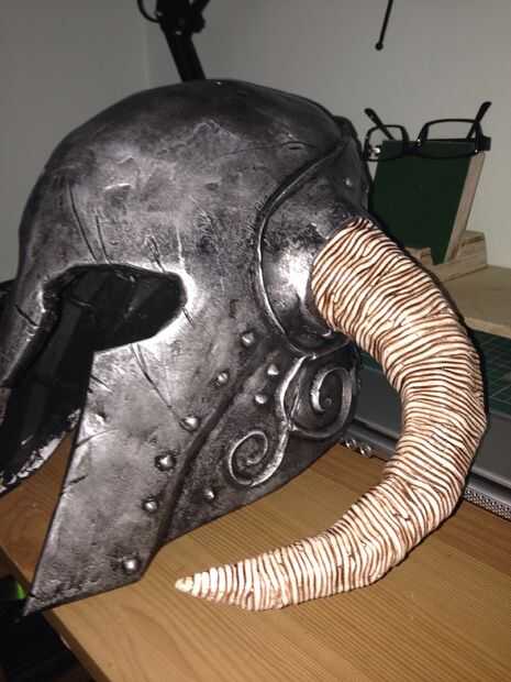 Así estamos casi allí, sus cascos pintados y mirando bien, que los cuernos están listos para ir, es el momento de Enrosque los cuernos en el casco por dentro, luego cuando tienes en un lugar agradable, con cinta adhesiva el interior para que no se mueven mientras que utilizo pegamento e6000 o hotglue para pegarlas en el lugar, usted podría tener algunas lagunas que está bien , uso de la mulliput apoxy para llenar los vacíos y suavizar, este también ayuda lugar los cuernos y hacer enlace con la tapa.