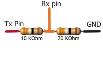 Arduino envía serie salida de 5v por el pin de Tx, mientras que el módulo del transmisor-receptor bluetooth usa 3.3v lógica. Así que un circuito divisor de tensión (nivel desplazador) es necesaria para convertir esta salida de 5v a 3.3v. Siga el diagrama esquemático y soldar las resistencias en el pedazo restante de PCB. Si su caja de arduino es bastante grande, puede tener este circuito dentro de la caja de arduino, más que usted tendrá que usar otra caja pequeña para este circuito.