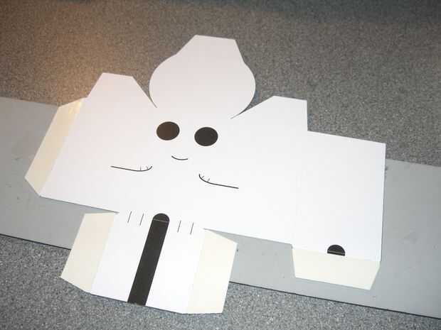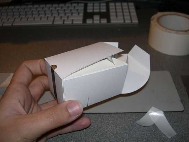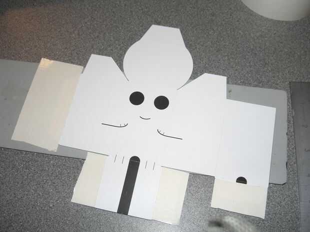 Pegar una pieza en cada una de las aletas, no pega demasiado cerca para cualquier canto por lo que no muestra cuando haya terminado, corte la cinta de doble cara abajo en el borde del papel.
