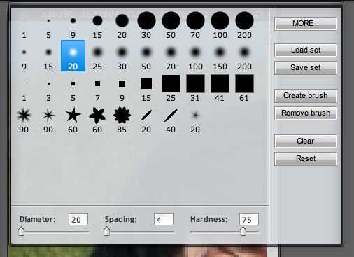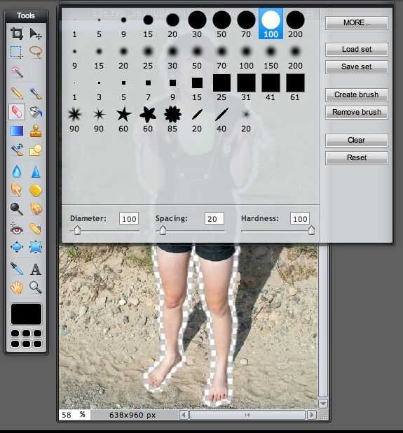 En la ventana de herramientas, seleccione la herramienta Borrador. Escoger una goma relativamente pequeña y hasta la dureza a alrededor de 75. Como borra el fondo, este borrador hará un borde alrededor de su imagen que está nítido de lejos pero naturalmente se integra en el fondo un poco.