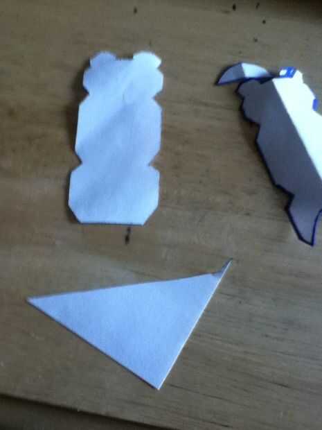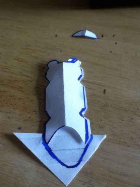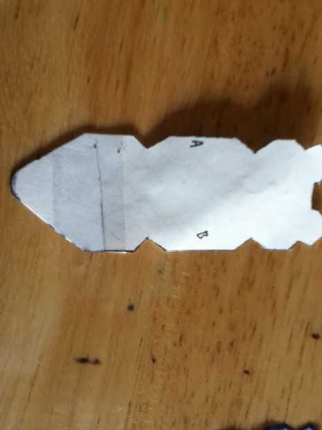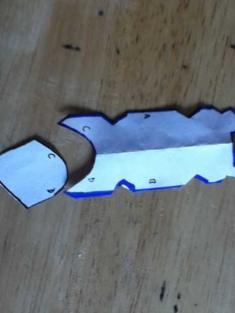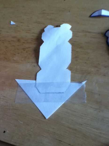 Se me olvidaba una cosa cuando me estaba haciendo la base con el papel, la cosa puntiaguda cola. Para hacerlo solo consigue un trozo de papel y cinta adhesiva en el 2 º base no corte. Trazar una flecha puntiaguda pero contundente y recortarlo. Para hacer el conector entre ellos, solo traza lo de flecha y la base de corte y corte. Luego pégalo en el base del corte en un ángulo.