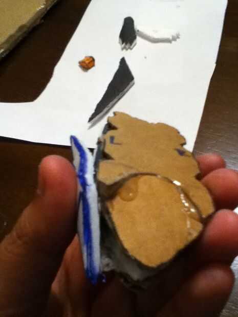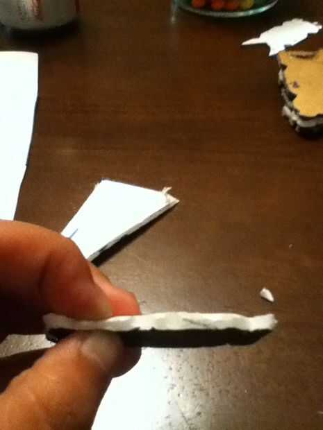 Para hacer el collar de um, no Halloween, haz la cartulina y traza la base otra vez. Después de se corte, pegamento a la base con la flecha puntiaguda. Pegar el corte base sobre la cartulina base. (Sé que esto se está poniendo confuso basta con ver las fotos casi se realizaron con este proyecto. Stay With Me!) Hacer un triángulo (tiene las medidas en las fotos). Pegar sobre el oso.
