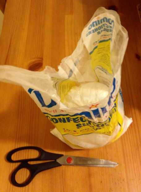 Puede ser arroz verduras en este caso estoy usando azúcar en polvo, hay todo tipo de cosas alrededor de la cocina que desea sellar