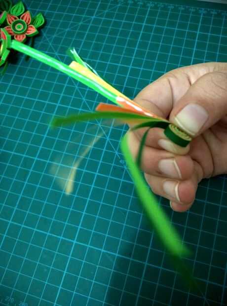 Puede utilizar este mismo método y hojas verdes para acompañar a tus flores... Añadir los tallos a ellos y hacer unos zarcillos que he mostrado aquí...