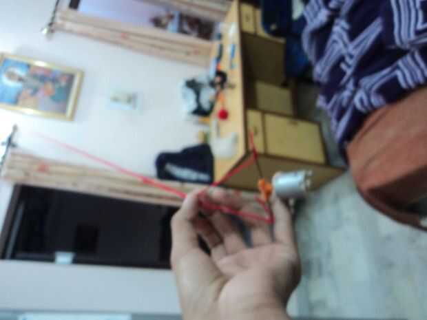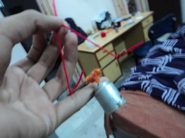 Tomar un motor eléctrico y unirse a mantenerlo verticalmente con pegamento instantáneo toman un trozo largo de hilo y dóblalo a la mitad y unir los dos extremos a palos motor respectivamente y giran el motor cuando se pone totalmente nuevamente doblar en la mitad y luego te necesito no a giran que sería automáticamente Remolino alrededor y se convierten en amplio del