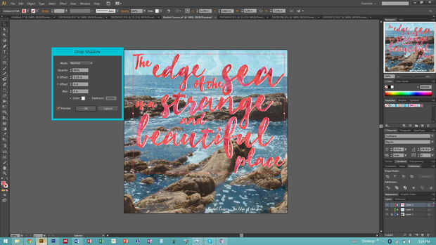 Para llamar la atención sobre el texto, queremos que se vea como la versión blanca del texto detrás del texto swatched, pero un poco fuera de la base. Ello, seleccione el texto y vamos a efecto -> Estilizar -> sombra paralela. Hacer que el color blanco (o lo que se ve mejor para su imagen o texto) con una opacidad de 90-100%, X-offset de 0.05 en y Y-offset de 0.