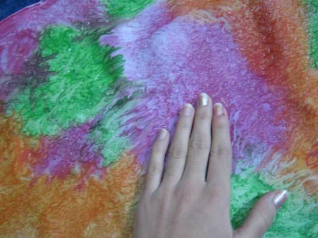 Después el color se seca eliminar completamente la sal chino frotando la mano en él. Deja matices hermosa pequeña en la tela.