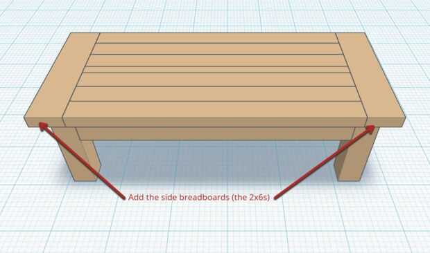 Medir y cortar dos piezas de 2 x 6. En mi ejemplo, la longitud de las piezas de 2 x 6 será equivalente a la anchura de la tabla (según lo determinado por las 7 juntas en el medio que atamos justo en el paso anterior). Resulta ser 22.5".