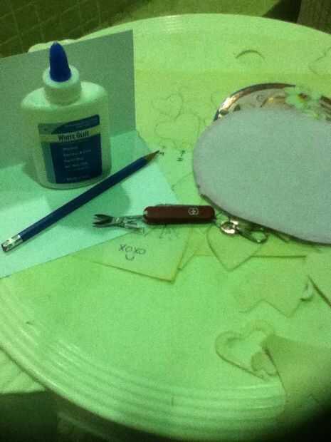 Aparte de que el pegamento, tijeras, papel de desecho y una especie de papel de color o de fantasía. Usé un bloc de notas. ($1)