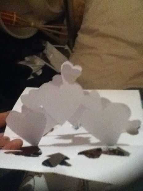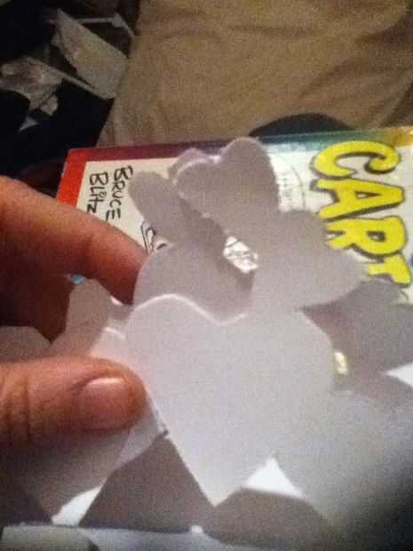 Cerrar la tarjeta y unir las solapas interiores. Con un lápiz trace una línea en cada uno para mostrar en que se conectan. Corte un nicho en cada solapa por lo que puede deslizar dentro de otra. Conectar como tal. Cambialo a un lado para más tarde.