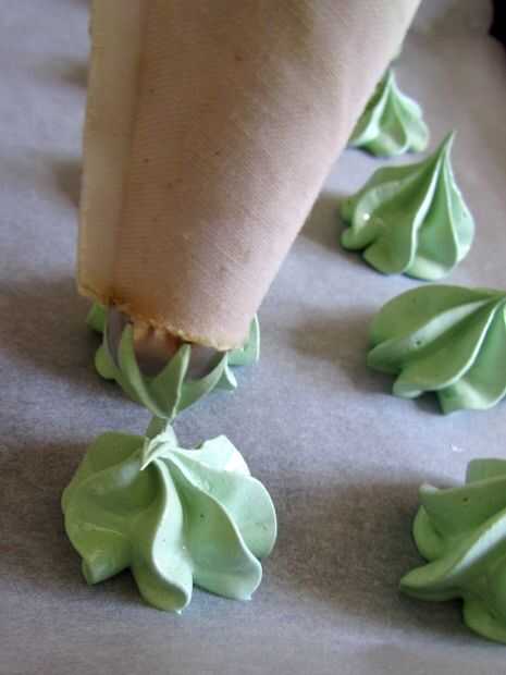 - Vierta el merengue en una manga pastelera y tuberías pequeñas estrellas en la bandeja para hornear.