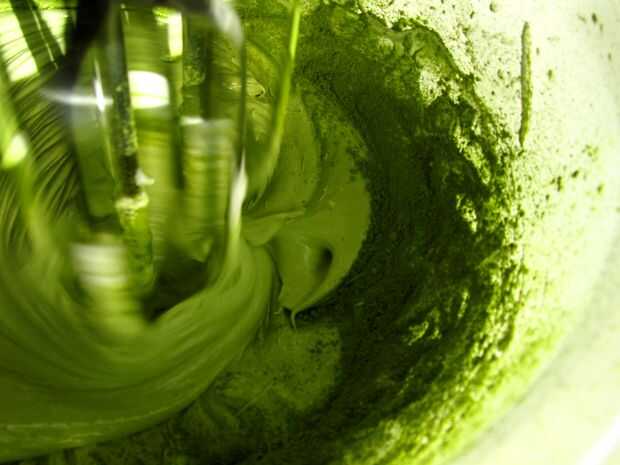 - Una vez que el azúcar se disuelva, añadir el matcha y batir hasta combinar. Si usted ' re usando extra foiod colorante, Agregar esto también.
