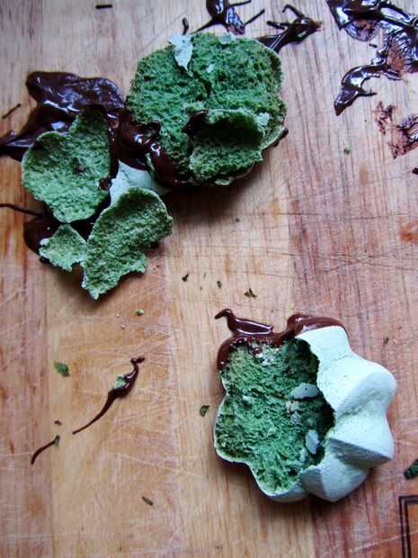 - Cuando frío sacar del horno. Para un toque extra de la inmersión las bases de los merengues de chocolate derretido. Manipúlelos con cuidado, ya que las cáscaras son muy frágiles.
