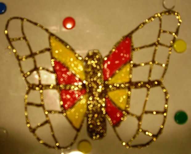 Con la pintura de vidrieras puede pintar su mariposa. Puede utilizar cualquier color que desee. Si la mariposa tiene secciones puede poner un color diferente de pintura en cada sección o si lo dejaste una sección usted puede divertirse creando efectos "Tie-Dye" con sus colores utilizando palillos de dientes. Ser creativo, usar colores tantos o tan pocos como desee.