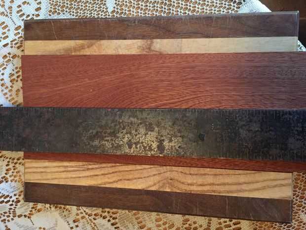 Empezar con la chapa de madera. He comprado un pack de muestra de 50 piezas de artesanía de madera. Es un tamaño perfecto y tienes una gran variedad. Me gusta elegir dos piezas que se complementan entre sí. Una madera clara y oscura lucen realmente muy bien juntos.