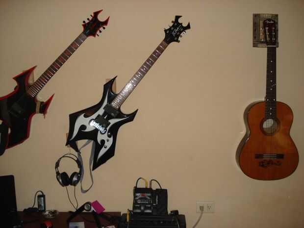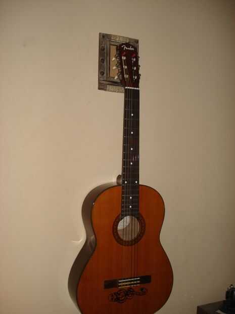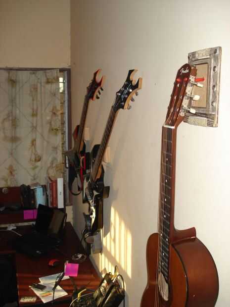 fuentes 1 x guitarra colgador de pared cosita recogí uno de Internet por alrededor de cuatro libras (unos seis dólares) uno soporte el tamaño de la profundidad de la guitarra (recogí uno de un hombase cerca de mí un it costó sobre cincuenta peniques)