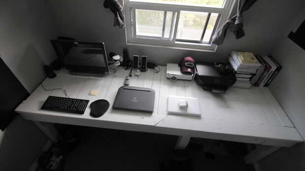 Introducción:Mi hijo necesita un escritorio para acomodar la vida de dormitorio.  Como alguien que disfruta haciendo cosas desde el principio, pensé que esto sonaba como un proyecto perfecto... hasta que precio de madera (no MDF :-).Al darse cuenta q