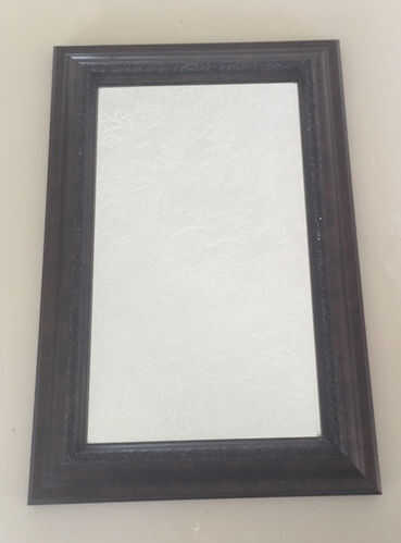 Este espejo me costó 15 dólares en Ross. Apuesto a que usted podría encontrar uno barato en una tienda de segunda mano. Mide 12 "x 24". Me preocupaba que el tamaño de ser demasiado pesado, pero con todo lo que he añadido, apenas hizo una diferencia. No voy demasiado grande o que tenga un tiempo difícil encontrar suficiente fruslerías para unir.