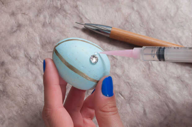 1. tomar su pluma de oro un crear un bucle que va vertical a cada lado del huevo.