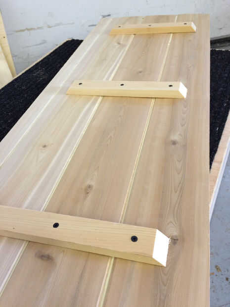 5 - cuando están secando las juntas de tapa de cedro corte 3 pedazos de la franja de 1 "x 2" de madera que son sólo lo suficientemente grandes como para permitir que un tornillo en cada junta de tapa de cedro y sujete a la parte inferior de la tapa. ver fotos para una mejor comprensión.