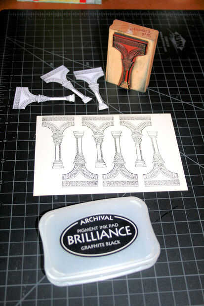 Ya se ve hermoso, pero ahora es el momento para que sea realmente especial. Estampar el elemento de arco en cartulina de espesor extra. En mi primera caja, utilicé un montón de fichas que salvé de la basura. En la obra de arte, verá que he impreso a cada lado con la mayoría de los arcos juntos. Los arcos impresos son su mapa o la guía, porque necesita la fresca imagen estampada en la cartulina el pleno efecto. Opcional: Si desea que realzan las líneas, ahora es cuando lo haces. Para la grabación en relieve, rápidamente y con cuidado espolvorear polvo en la tinta húmeda, toque la cartulina varias veces en el lado y todo el polvo suelto en un pedazo de papel a continuación, pulse. Después de que su papel se cubre con imágenes, usar la pistola de calor hasta que el polvo derrite.