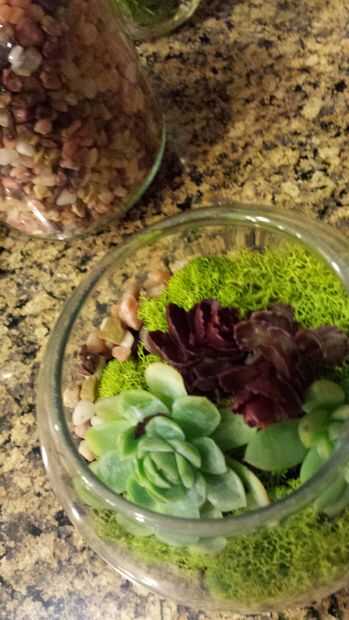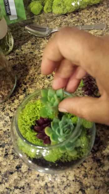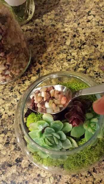 4. Utilice el verde musgo para cubrir el suelo restante alrededor de las suculentas.