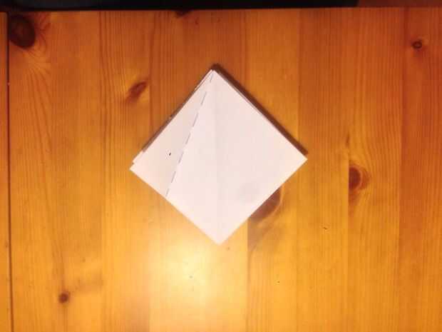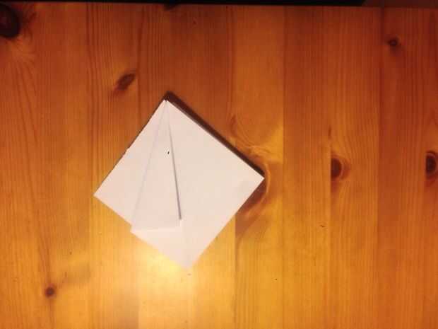 Ahora tienes que dobla las esquinas exteriores hacia el centro como se muestra en la imagen. Recuerde tener la abertura hacia la parte puntiaguda del doblez.