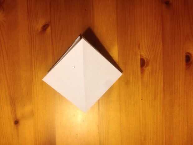 Ahora si lo has hecho todo correcto deberás acabar con una forma de rombo con una abertura en uno de los lados.