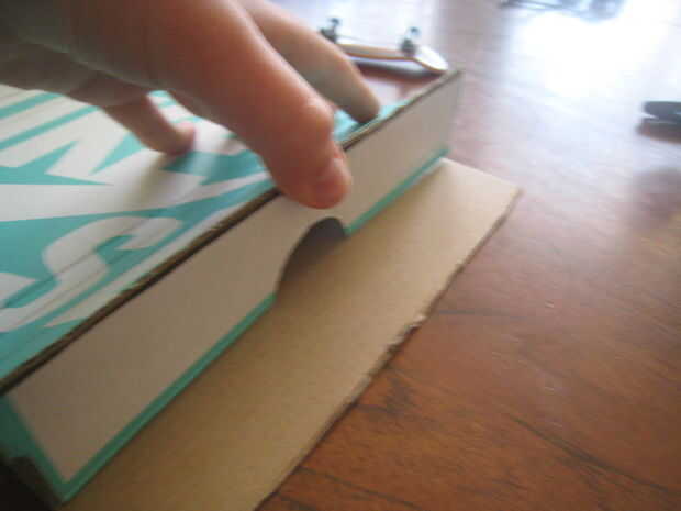 Tomé las fotos para este uno pensamiento que solo iba a hacer a otro, cuando resulta no quedan suficiente madera. Básicamente lo queremos es hacer un triángulo de cartón doblando la cartulina como si hiciste la Miniramp de Herowood. Luego, sólo pegué