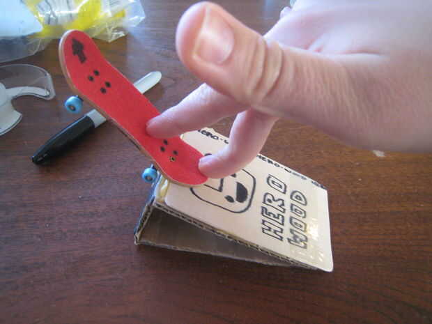 Tomé las fotos para este uno pensamiento que solo iba a hacer a otro, cuando resulta no quedan suficiente madera. Básicamente lo queremos es hacer un triángulo de cartón doblando la cartulina como si hiciste la Miniramp de Herowood. Luego, sólo pegué una cara de la madera en la parte delantera de él. Todos los ángulos son hasta usted.