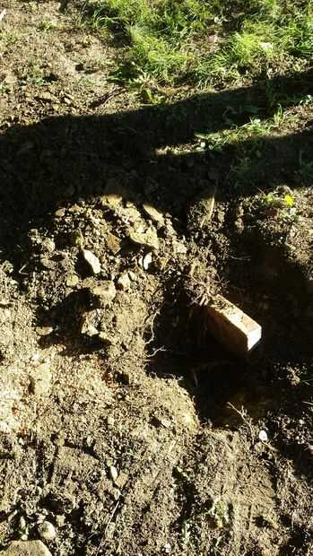 Entonces tomé la espiga anteriores y condujo en el suelo con slege hammer, cerca de la herradura pitt.