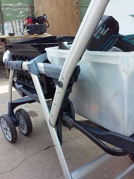 esto es un portador de canoa o kayak modificado de una carriola de trotar. La silla de paseo fue comprado en un garaje saie y sólo requiere una broca pequeña de la reingeniería para crear la compañía. Esta marca fue hecha por soñador diseño y se lla