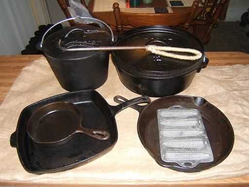 Hay varias piezas de utensilios de cocina que están hechos de hierro fundido, siendo el más popular sartenes, ollas, hornos holandeses, cacerolas del mollete, pan sartenes y planchas que se hacen para caber sobre el quemador de una estufa.