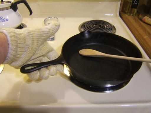 Recuerde que hierro colado distribuye el calor bastante uniformemente - incluso al mango! No agarrar un mango pelado si usted está cocinando con la pieza ya que es caliente como el pan de sí mismo. Usar una toalla, un tomaollas, una manopla o un guante - nada para protegerse de una quemadura desagradable.