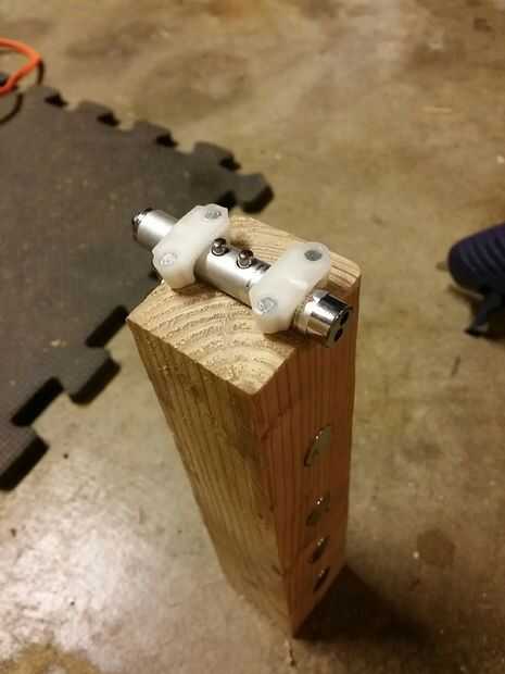 Instale el láser a la junta con los clavos de alambre. Asegúrese de que el láser esté orientada como se muestra en las fotos, con el extremo de salida de láser en el mismo lado de la Junta Directiva como los imanes.