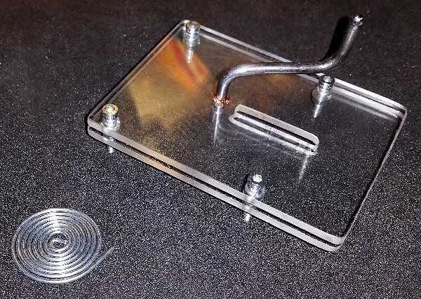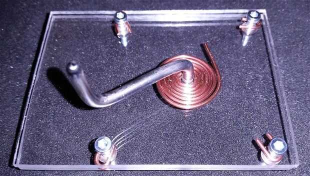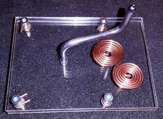 En la primera foto, puede ver el resultado de la debacle de mi cerebro. Cargué el alambre a través del agujero en el mango (la raja) y había hecho una espiral bastante bien (para una prueba inicial) y tuvieron que desmontar todo lo posible para conseguir la bobina hacia fuera (doh). Luego he añadido la raja, ya que para quitar la manija por supuesto. Entonces era así como quería y han hecho las bobinas espirales de cobre, así como hierro plateado (cerca ~1.4mm) alambre de zinc. La bobina grande en la última foto es ~ 47mm de diámetro (1/8" de 2"). Sin embargo...