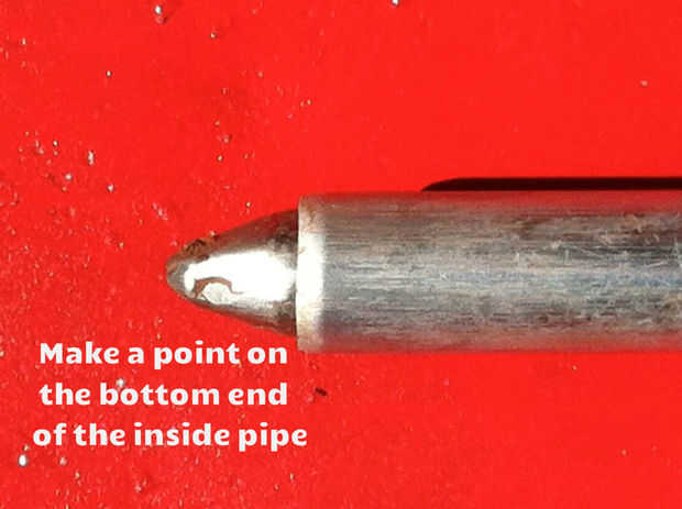 El conducto de 3/4 necesita un eje de 3 pies, sellado y señaló en la parte inferior y tiene 2 pies de la manija en la parte superior. También tiene un tornillo para unir los dos tubos.