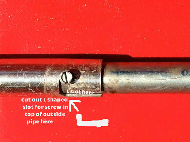 El tubo exterior se hace con una ranura en forma de L para el tornillo de la manija T a juntos.