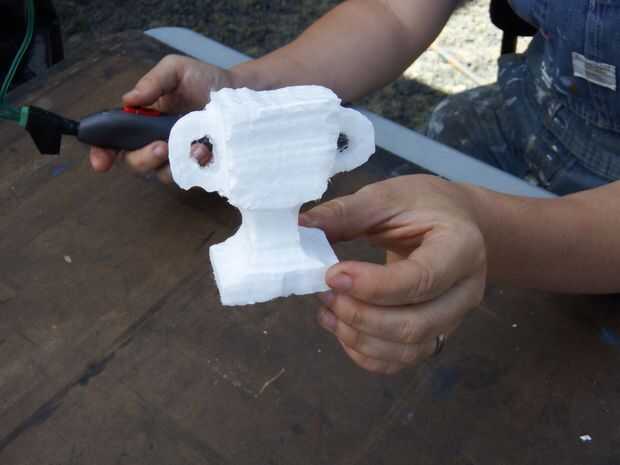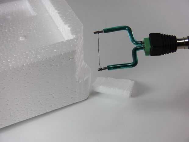 Coloque a la Solderdoodle, encender el Solderdoodle y proceder al corte de molde perdido de la espuma. (Las instrucciones sobre cómo construir la Solderdoodle pueden encontrarse aquí)